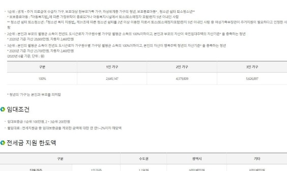 * 청소년복지지설 퇴소청소년 - 청소년복지시설을 2년 이상 이용한 후 퇴소한 지 5년 이내인 자(퇴소 예정자 포함)로서 여성가족부장관이 주거지원이 필요하다고 인정한 사람